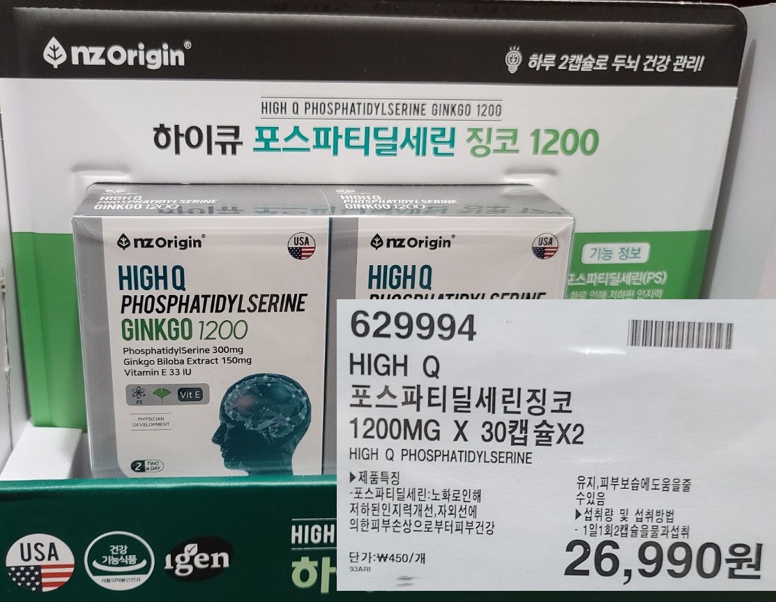 - 포스파티딜세린: 노화로 인해 저하된 인지력 개선