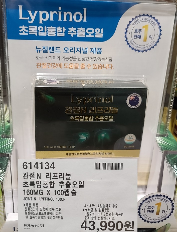 20. 관절 N 리프리놀 초록입 홍합 추출 오일 - 160mg X 100 캡슐