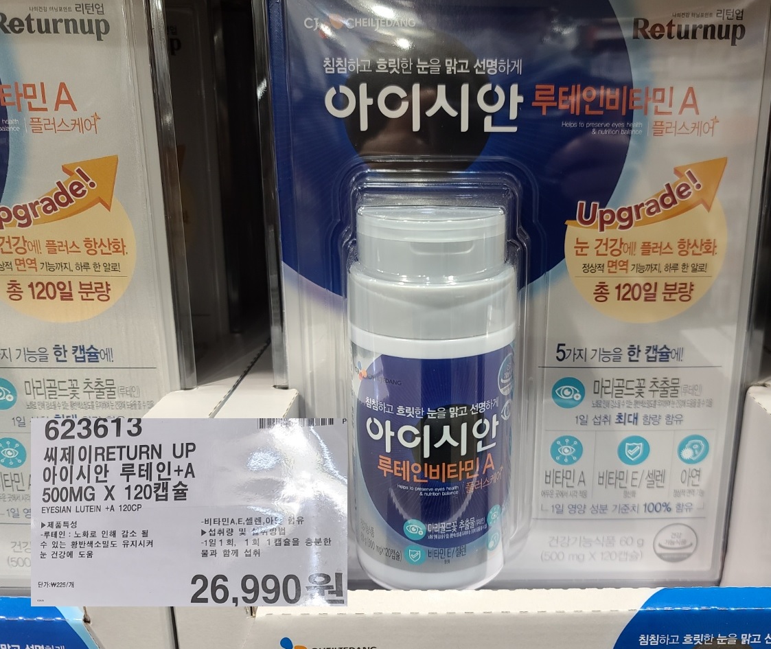 7. 씨제이 return up 아이시안 루테인 + 비타민 A - 500mg X 120 캡슐