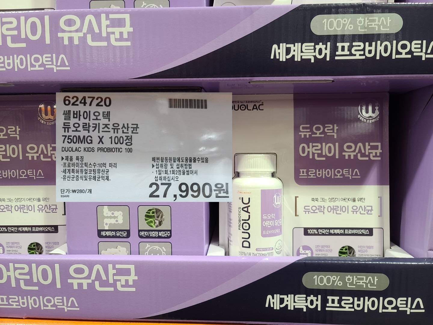 14. 쎌 바이오텍 듀오락 키즈 유산균 750mg X 100정