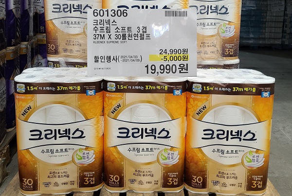 1. 크리넥스 수프림 소프트 3겹 롤 휴지